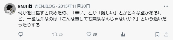 たまに流れてくる羨ましいツイートに悲観的になるか、モティベーションに変えるかは自分次第。