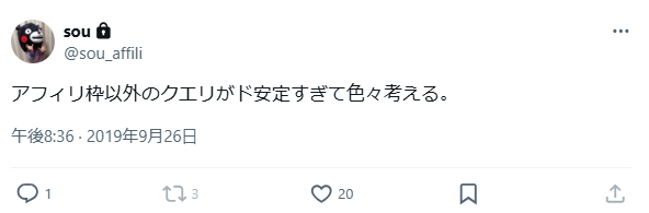 参考:https://twitter.com/mshayuma/status/1299312244572913667(アーカイブ)副業でアフィリやってて